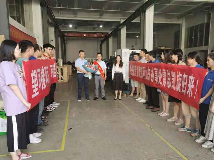 公司领导安排迎接活动,祝贺凯旋归来,并号召销售部全体同事向优秀同事学习,克服困难,永不放弃,再创辉煌!